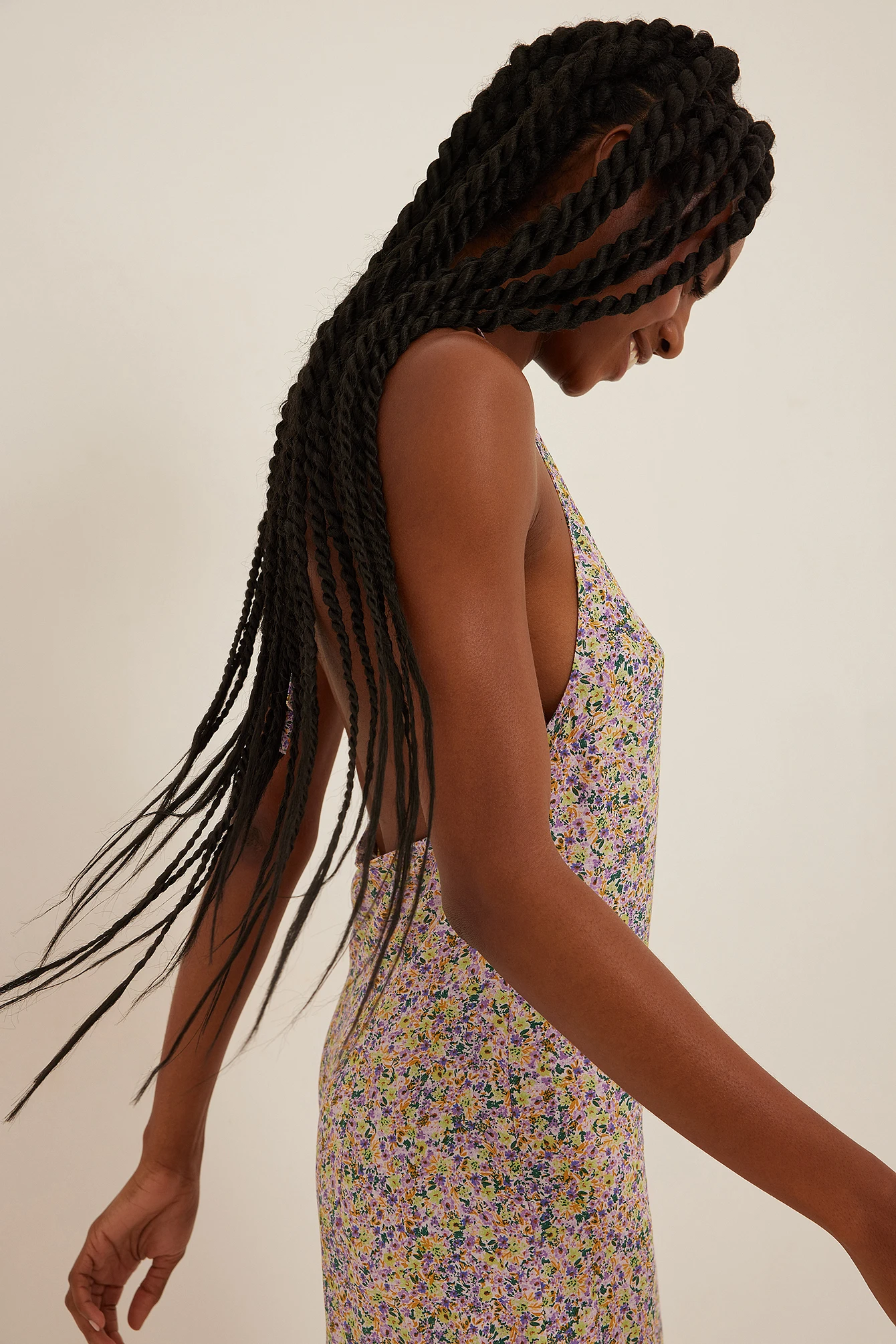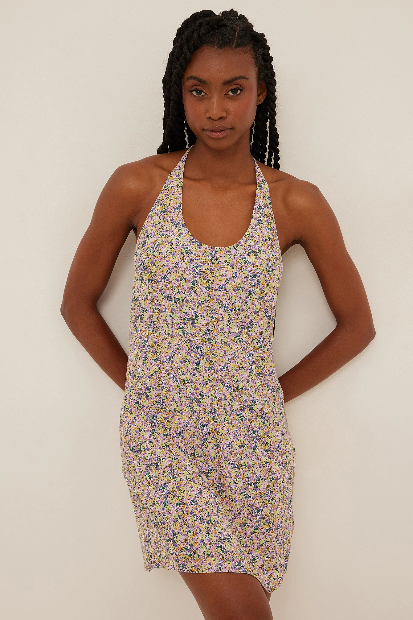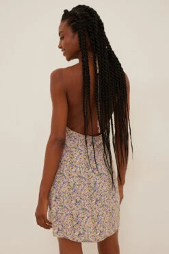 Cette robe courte a une bretelle tour du cou arrondie avec ajustable derriÚre la nuque, une fermeture éclair cachée sur le cÎté et une coupe fluide.
