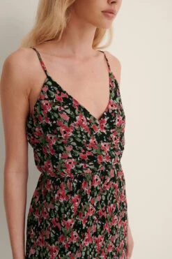 Cette robe courte a un col en V, des bretelles ajustables, un design chevauchant, une taille marquée, une coupe fluide et une doublure intérieure.