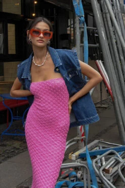 Cette robe midi est texturée et élastique et a un design à bandeau.