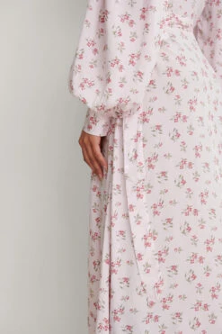 Cette robe a une robe midi, un col en V, des manches longues et un noeud de ceinture ajustable.