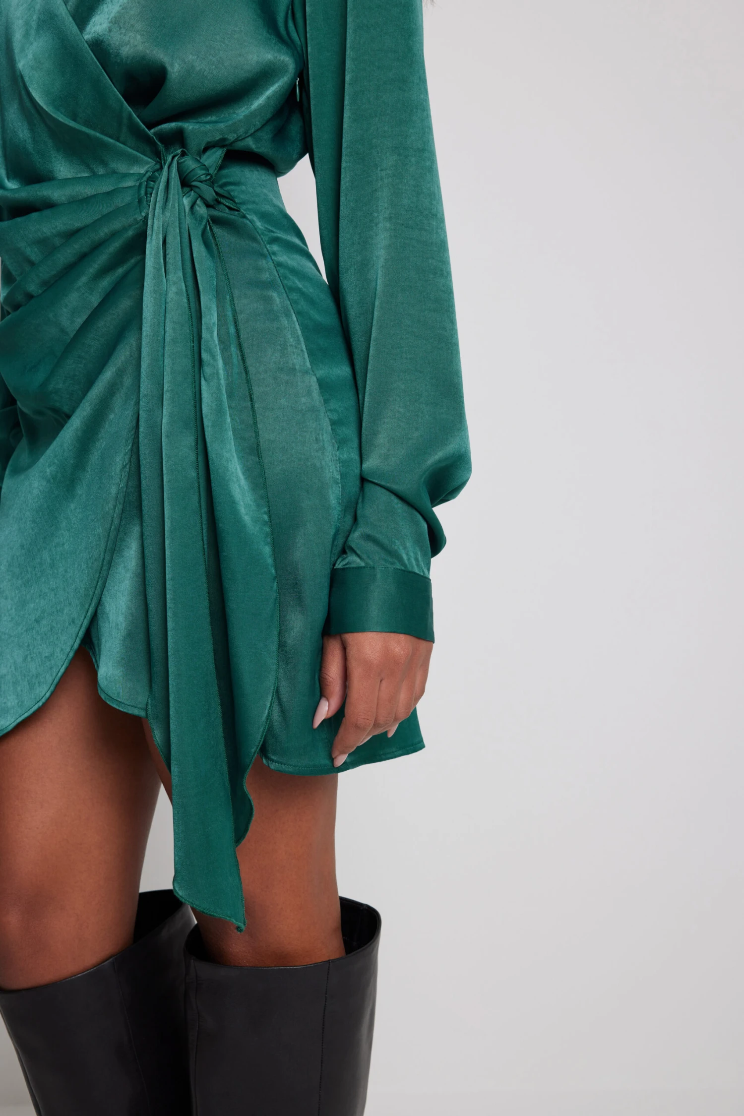 Cette robe a un col avec col en V, un design chevauchant plissé avec noeud de bretelles réglable, des boutons de manchette, une taille courte et une matière semblable à la soie douce.