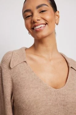 Cette robe midi est tricotée et a des manches longues, un col et une fente latérale.