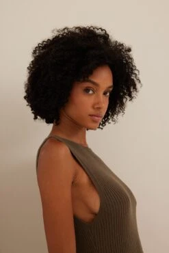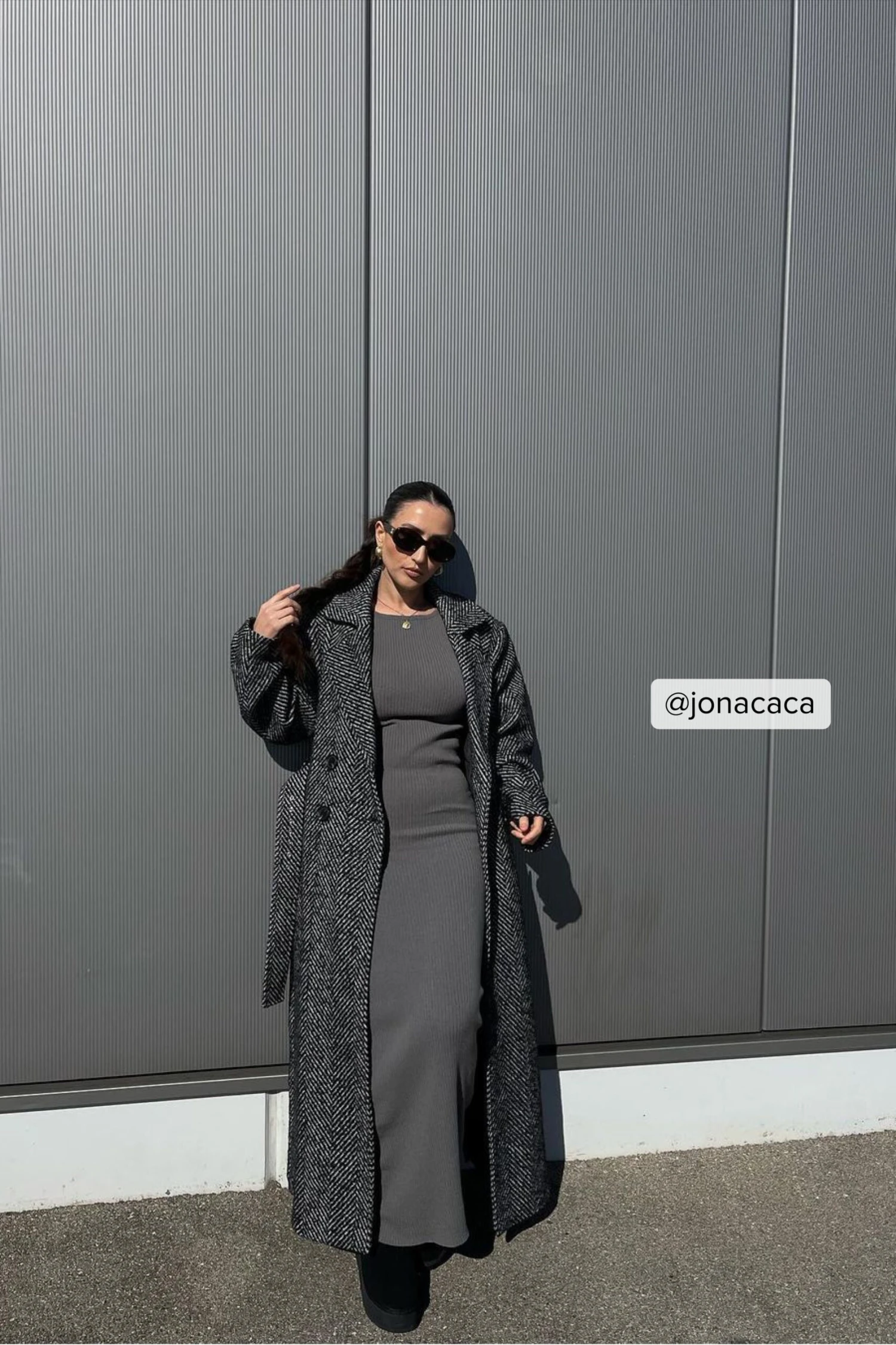 Cette robe a une matière élastique en tricot à nervures. Elle a un col arrondi et un design sans manches. Cette robe a une taille longue.