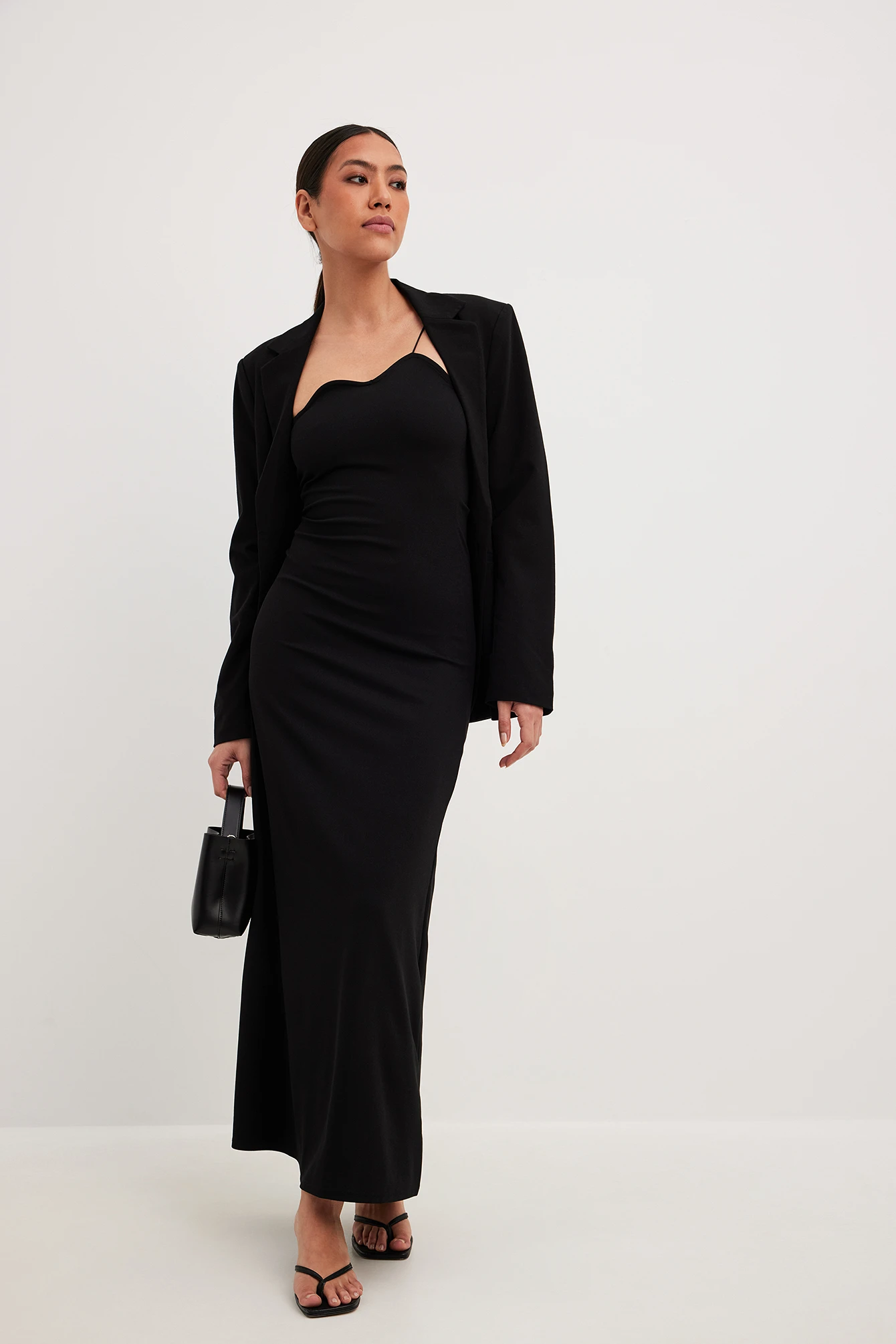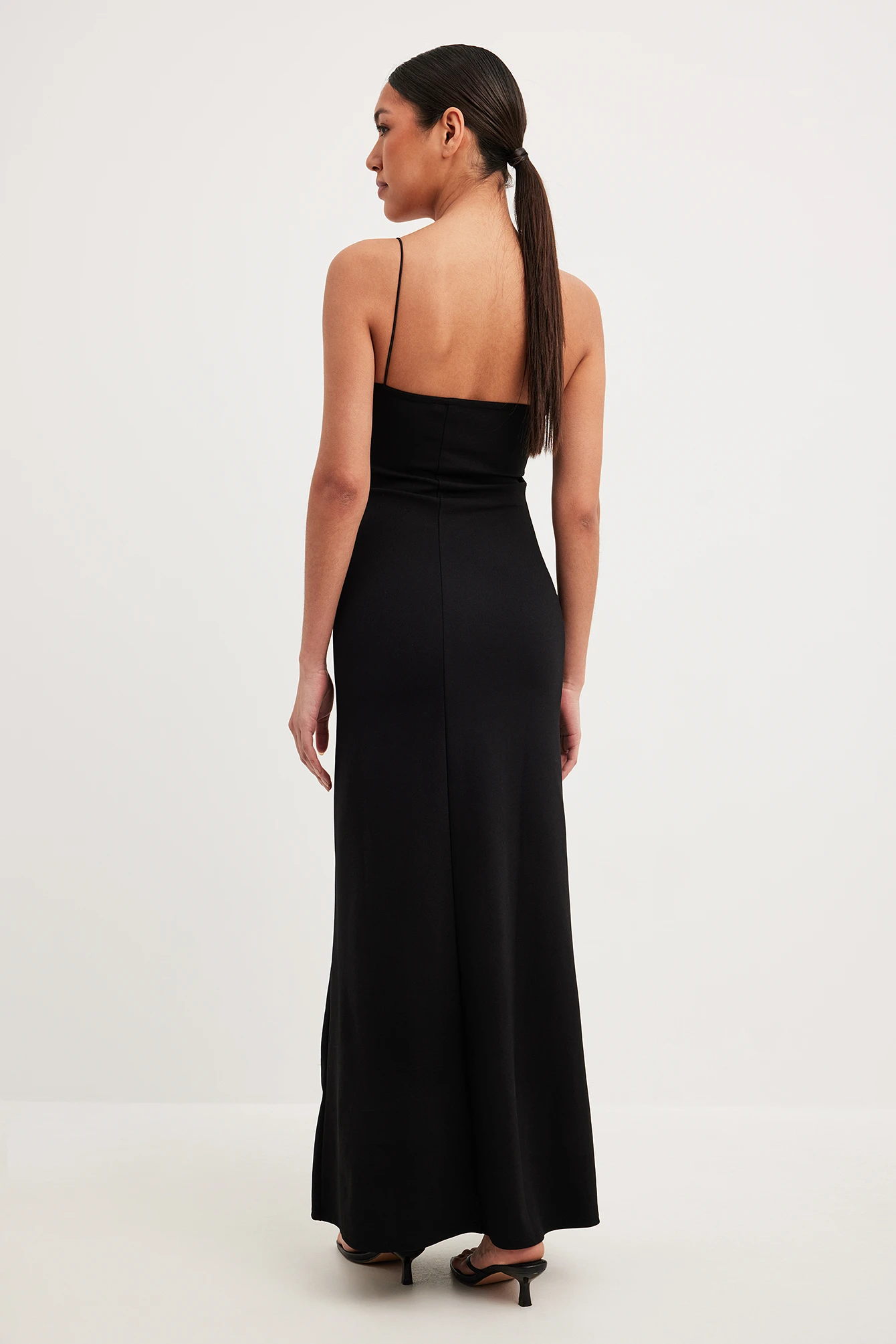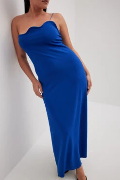Cette robe longue a de la forme serrĂ©e avec matière Ă©lastique. Elle a une bretelle fine et une encolure ondulĂ©e. Cette robe longue a une garniture intĂ©rieure en silicone Ă l’arrière.