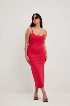 Cette nuisette est élastique et a une taille midi. Elle a une coupe moulante et une encolure dégagée. Cette nuisette a un détail fendu arrière et des bretelles fines.