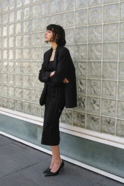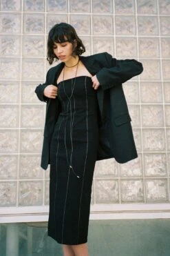 Cette robe midi a une coupe moulante. Elle a un design à bandeau et des coutures à couleur contrastée. Cette robe midi a une fermeture éclair latérale et un détail fendu arrière.