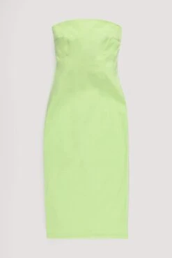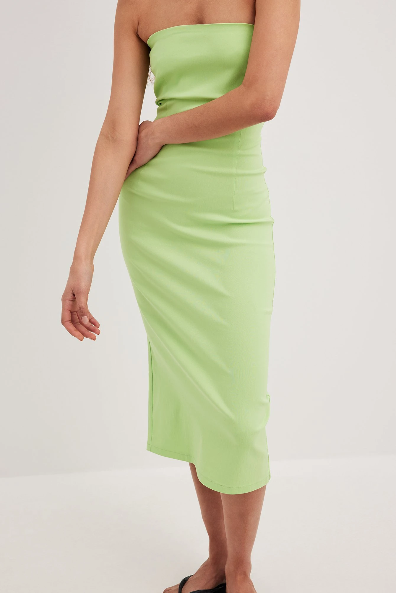 Cette robe midi a une matière Ă©lastique, un style bandeau et une coupe moulante. Elle a un froncement lĂ©ger Ă l’arrière, une fermeture au dos cachĂ©e et un dĂ©tail fendu arrière.