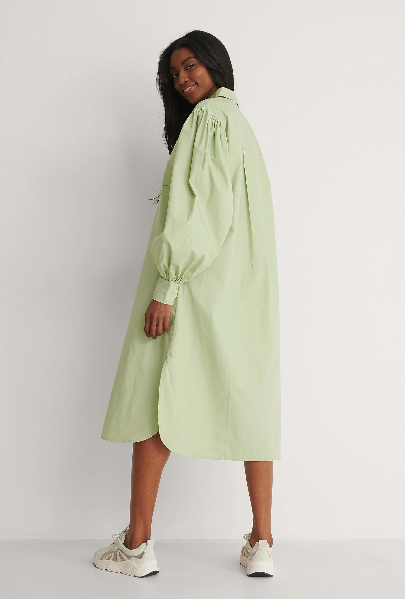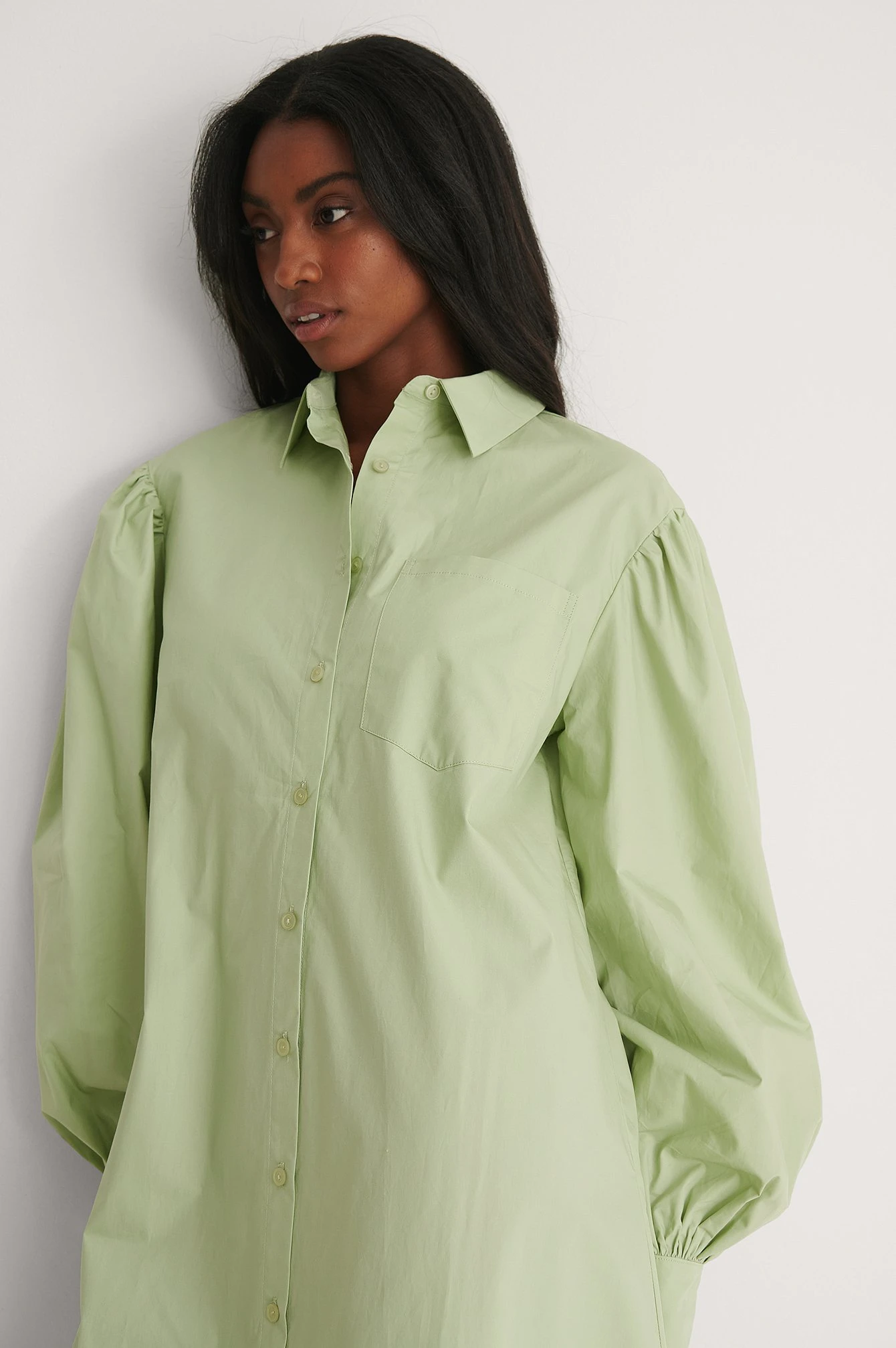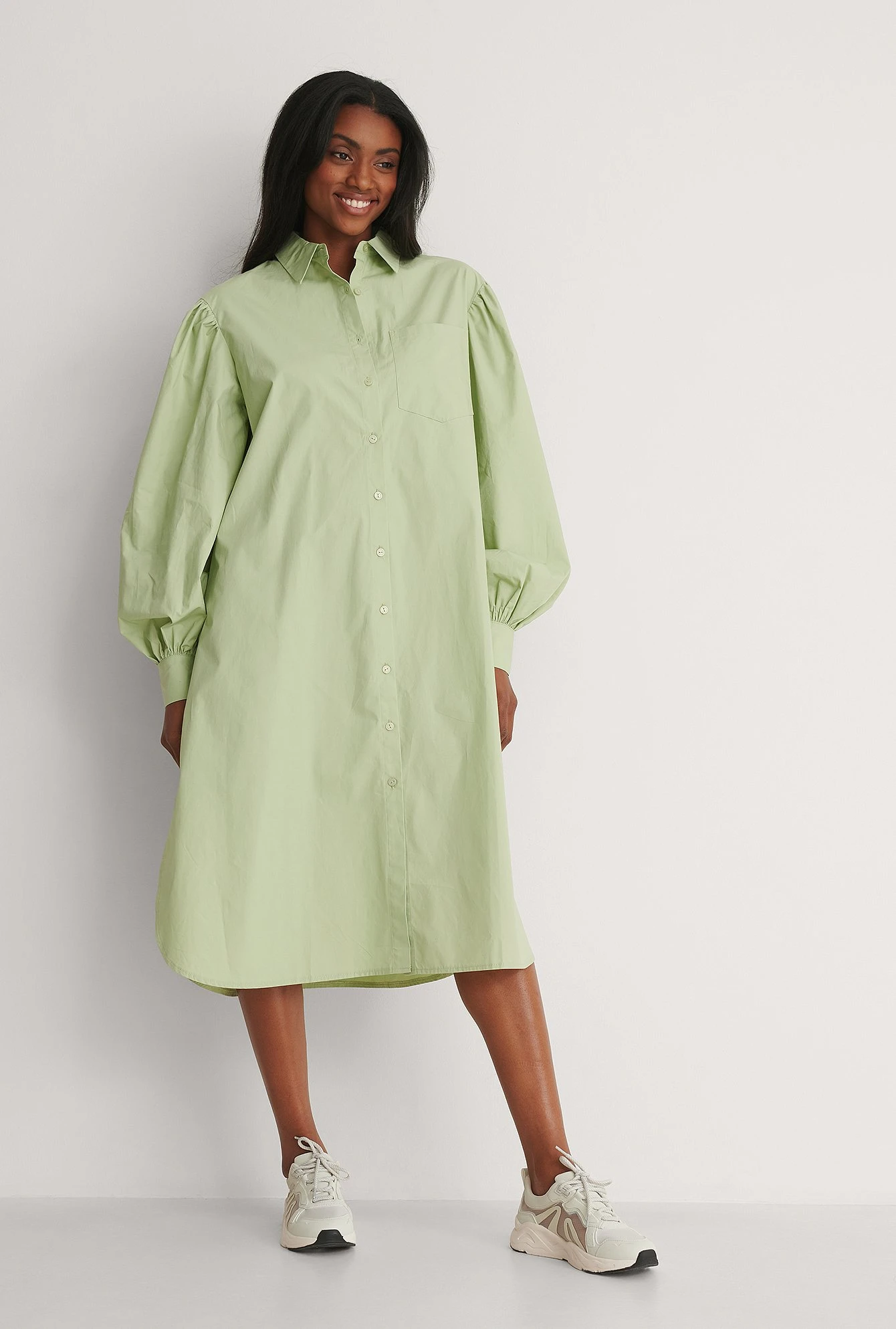 Cette robe chemise a un col classique. Elle a des boutons de fermeture Ă l’avant et des longues manches bouffantes avec deux boutons de manchette. Cette robe chemise a 1 poche Ă l’avant, une fente sur les cĂ´tĂ©s et une coupe oversize avec taille longue.
