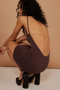 Cette robe courte a des bretelles fines et un dos ouvert avec chaîne. La pièce unique indispensable pour sortir.