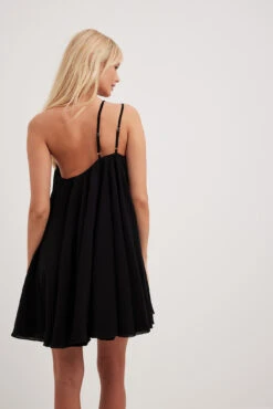 Cette robe est fluide et a une taille courte. Elle a un style à une épaule et une bretelle fine double et non amovible avec ajusteur. Cette robe a une fermeture éclair sur la manche et une doublure.