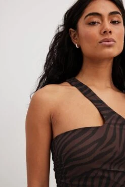 Cette robe courte a une coupe moulante. Elle a un design asymétrique et des détails froncés sur les côtés.