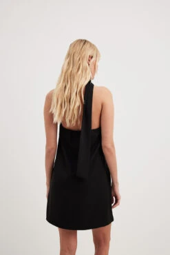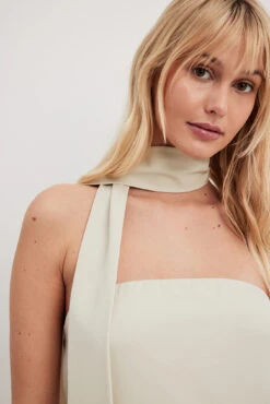 Cette robe a une taille courte. Elle a un design Ă bandeau et une dĂ©tail d’Ă©charpe. Cette robe a une garniture intĂ©rieure en silicone, une coupe fluide et une doublure.