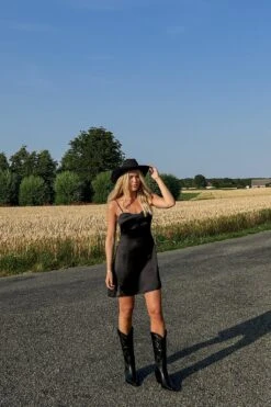 Cette robe courte a un ornement de strass au cou. Elle a des bretelles ajustables et une fermeture éclair latérale. Cette robe courte a une coupe fluide.