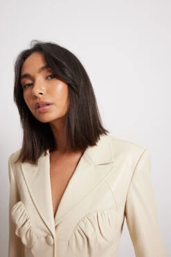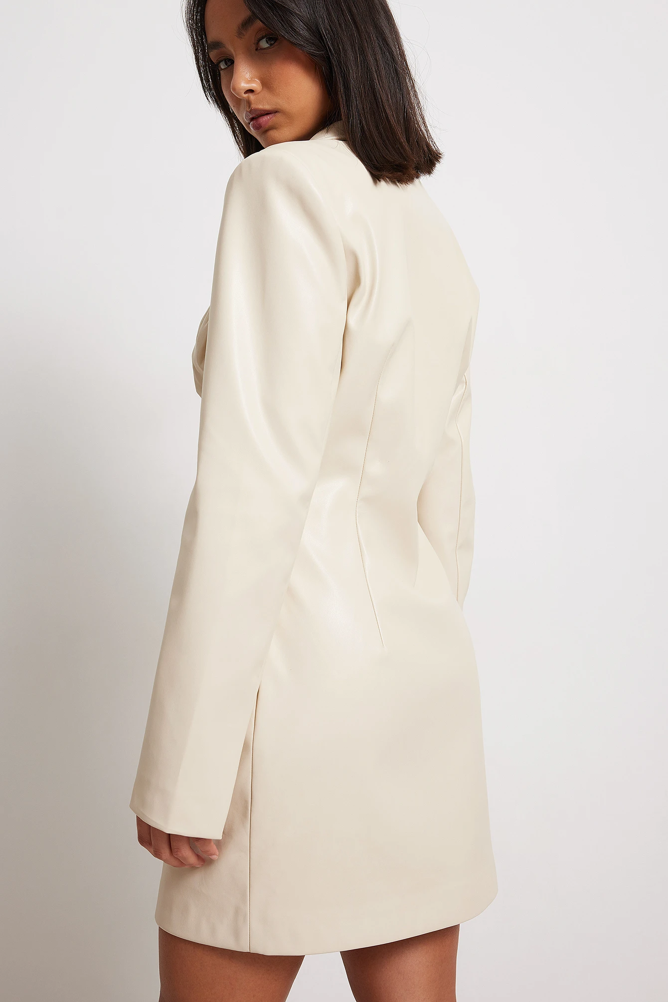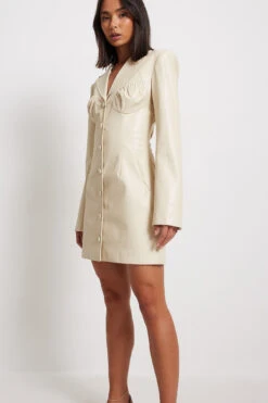 Cette robe a un design Ă revers, des manches longues, des bonnets froncĂ©s, un bouton de fermeture Ă l’avant, des poches latĂ©rales, une doublure intĂ©rieure, une taille courte et une matière en PU.