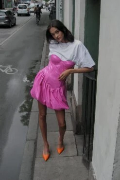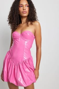 Cette robe courte a un col en forme de coeur, des bonnets à armature, une jupe coupe ballon, une fermeture éclair latérale et un toucher doux.