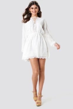 Cette robe courte est Ă doublure et a des dĂ©tails de broderie sur tout le textile, un col arrondi avec bouton de fermeture Ă l’arrière de la nuque, des manches longues bouffantes avec bande Ă©lastique, des passants de ceinture avec ceinture ajustable amovible et une coupe dĂ©contractĂ©e.