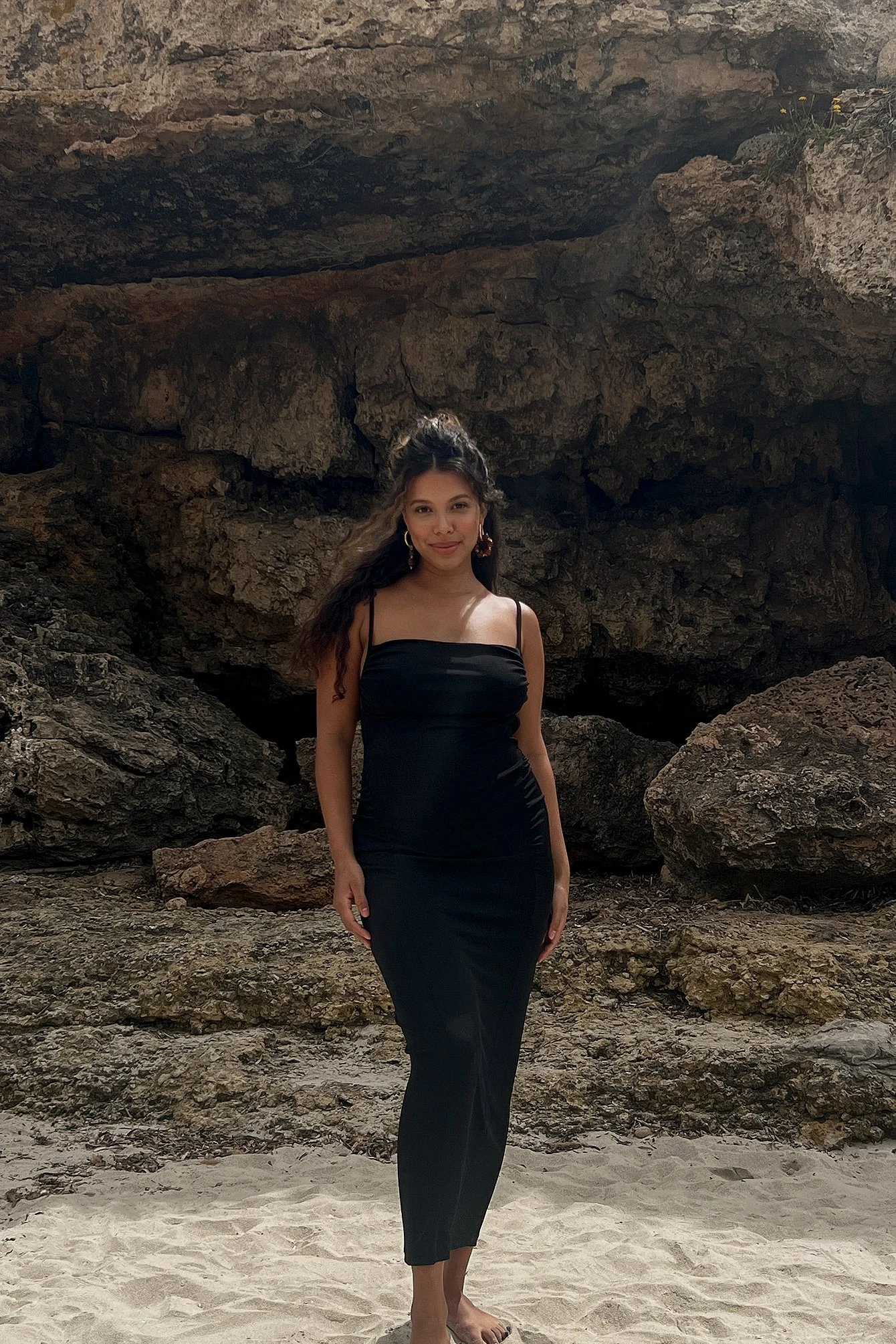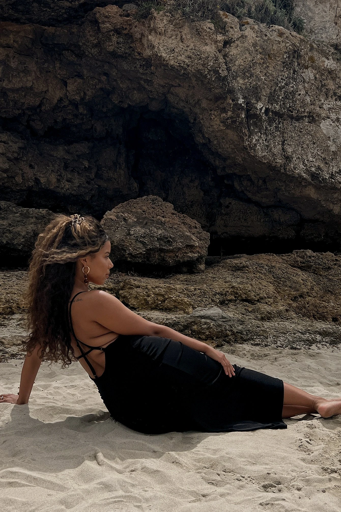 Cette robe midi a des bretelles croisées avec design à dos ouvert et des fronces sur les côtés.