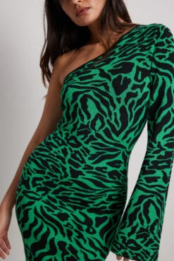 Cette robe midi est ajustée et a un tissu tricoté. Elle a un design à une manche large.