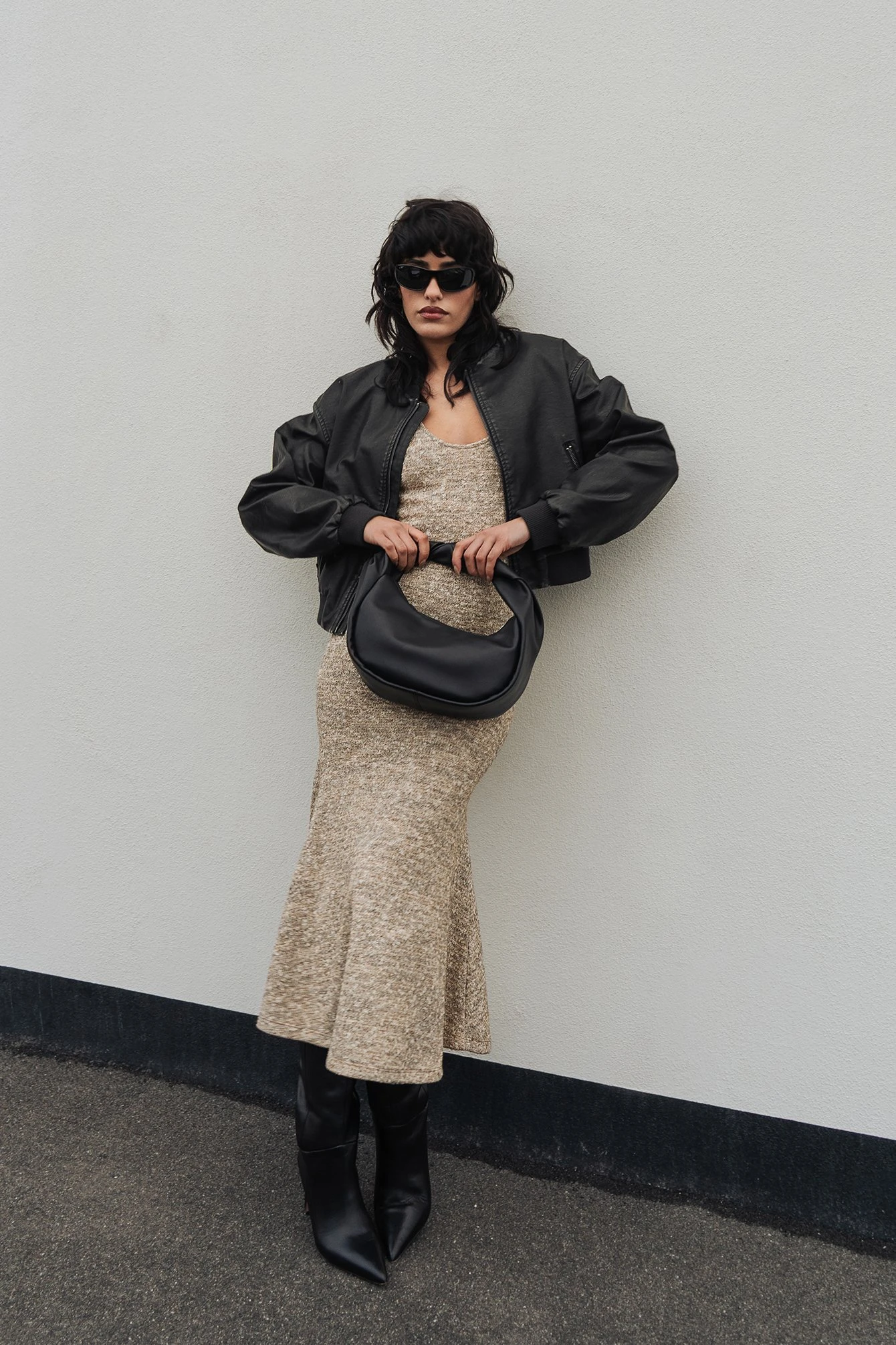 Cette robe midi est sans manches. Elle a un gilet décontracté et une coupe fluide au bas. Cette robe midi a une encolure dégagée et un dos nu.