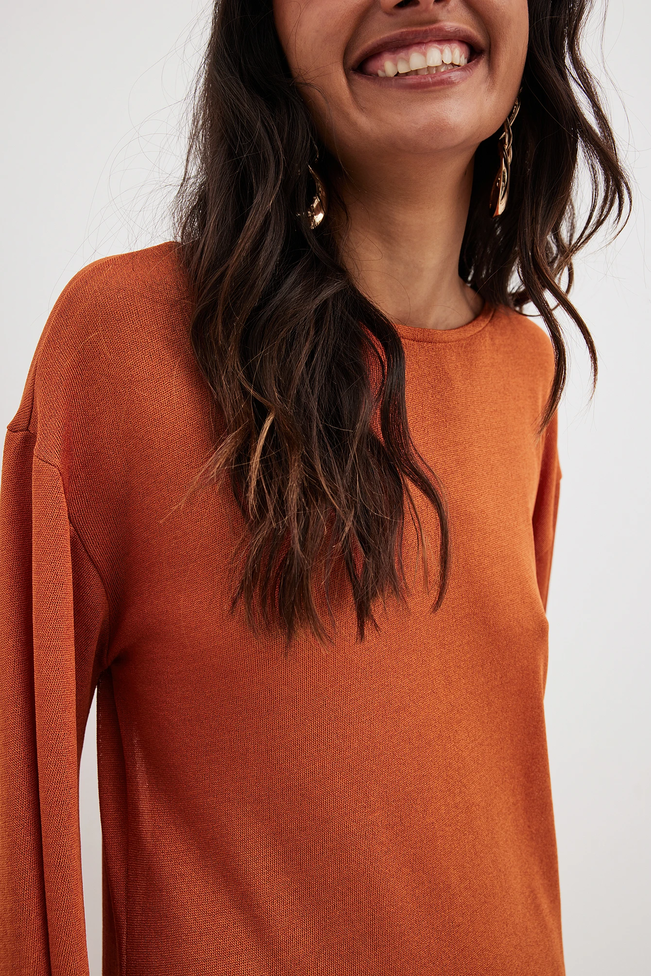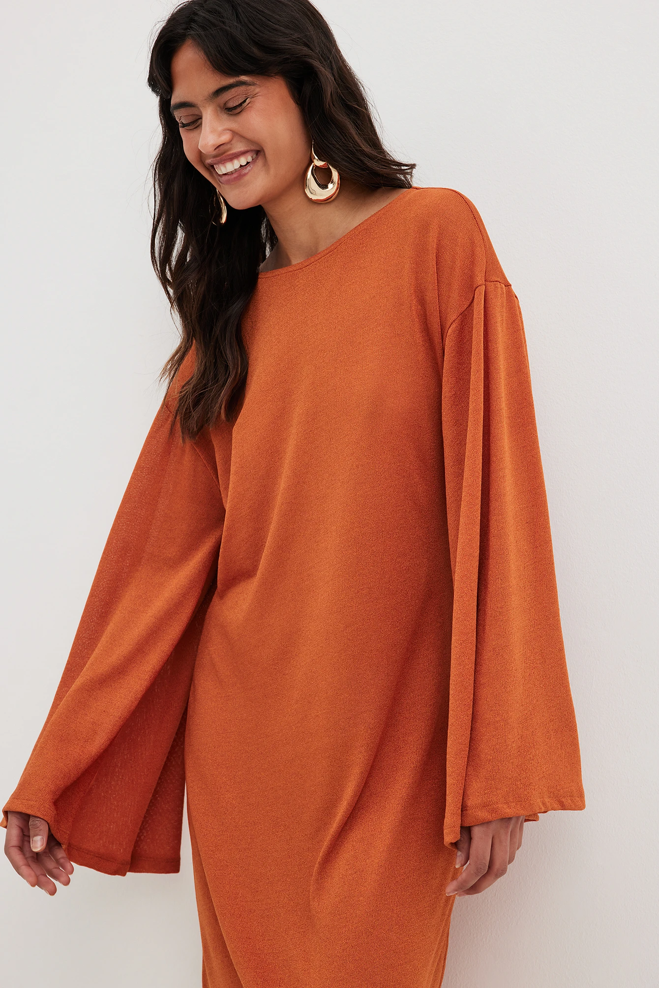 Cette robe longue a un col arrondi. Elle a une manche longue large et un design tricoté. Cette robe longue a une coupe fluide.