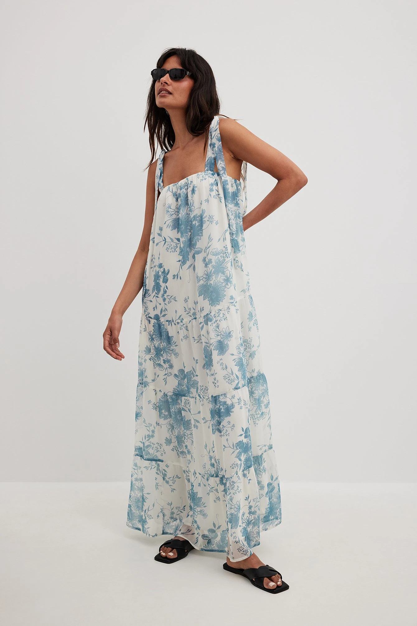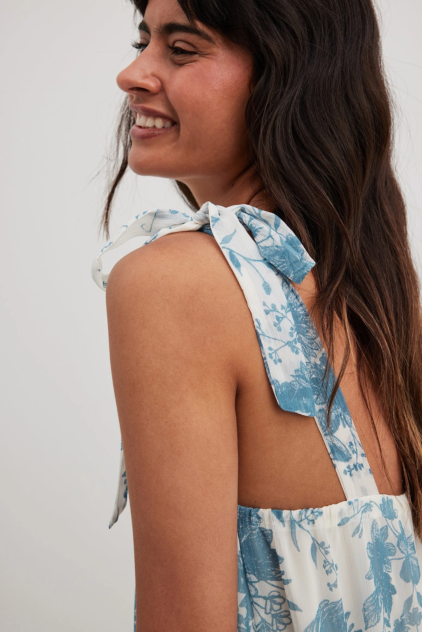 Cette robe longue a un détail auto-sérré aux épaules. Elle a une lanière élastique fine sur la poitrine et une coupe fluide lâche. Cette robe longue a une doublure.