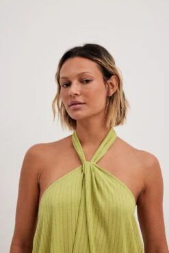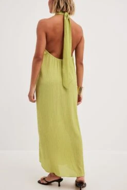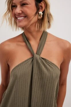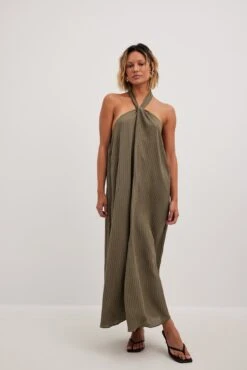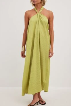 Cette robe midi a une bretelle tour du cou. Elle a un ajustable derriĂšre la nuque et une laniĂšre Ă©lastique fine Ă l’arriĂšre. Cette robe midi a une taille large fluide et une matiĂšre lĂ©gĂšre.