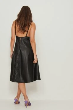 Cette robe est idĂ©ale pour vous mettre en valeur lors d’un Ă©vĂ©nement estival et a une matière en similicuir, une encolure en V, un dĂ©tail de couture sous la poitrine, un bouton de fermeture Ă l’arrière et une taille midi.