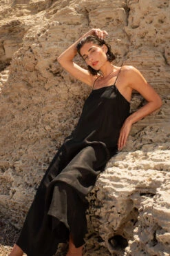 Cette robe midi est sans manches et a un toucher doux. Elle a une coupe fluide et des bretelles ajustables.