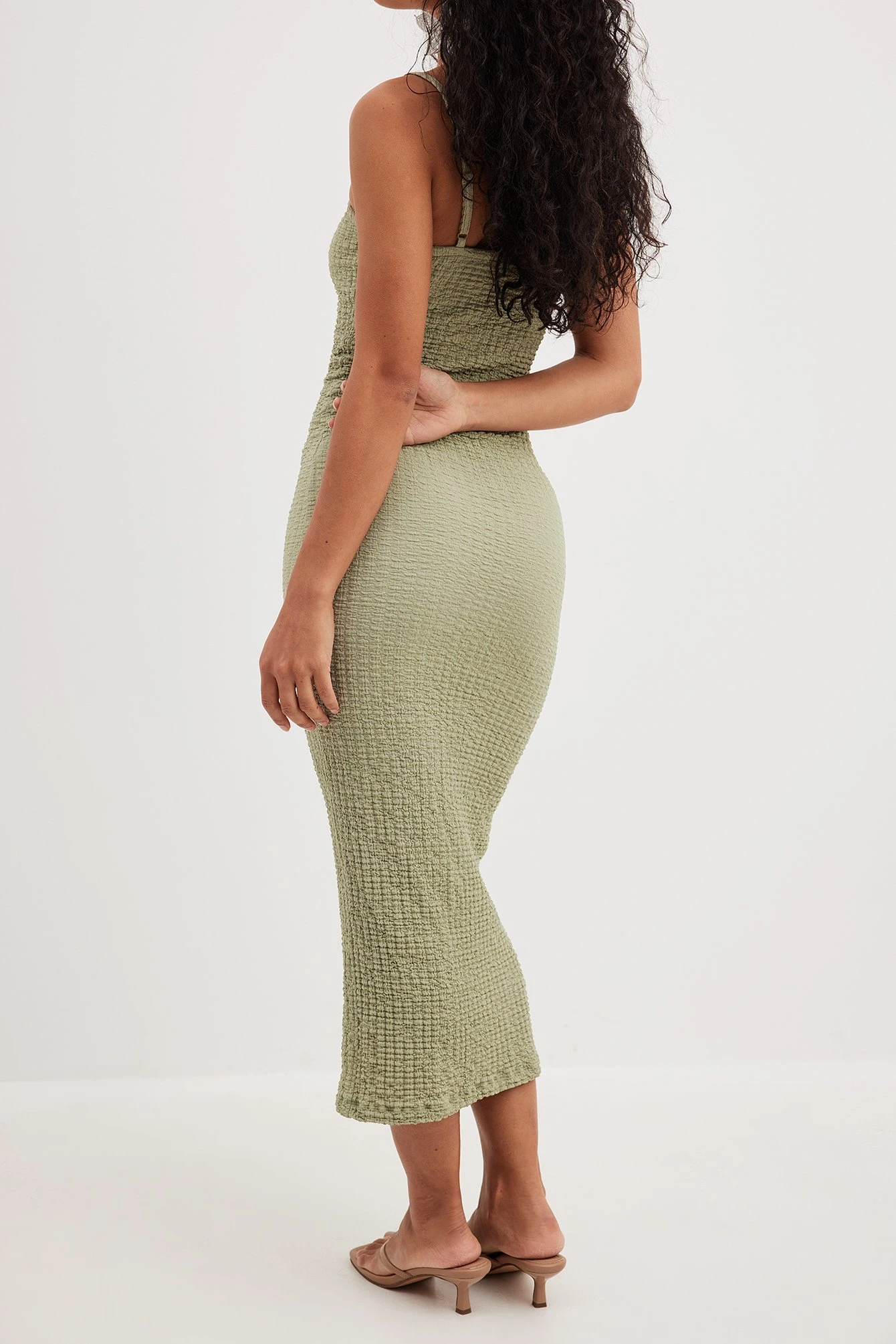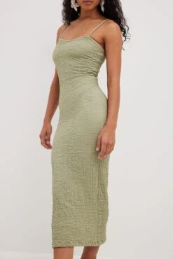 Cette robe midi a une coupe moulante. Elle a des bretelles fines et une garniture intérieure en silicone. Cette robe midi a une matière élastique et une doublure.