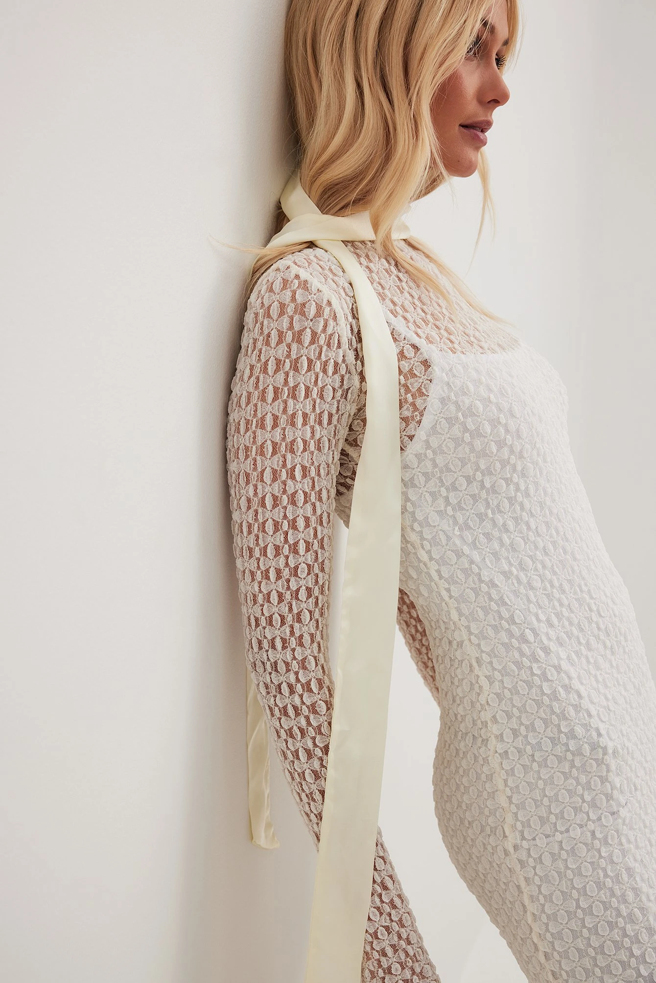 Cette robe midi est transparente et faite en dentelle et a une matiÚre texturée. Elle a des manches longues et une encolure bateau.