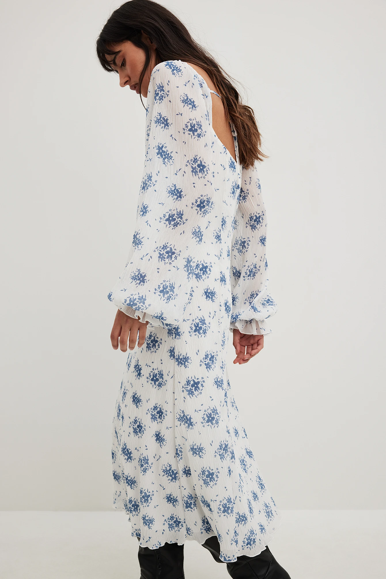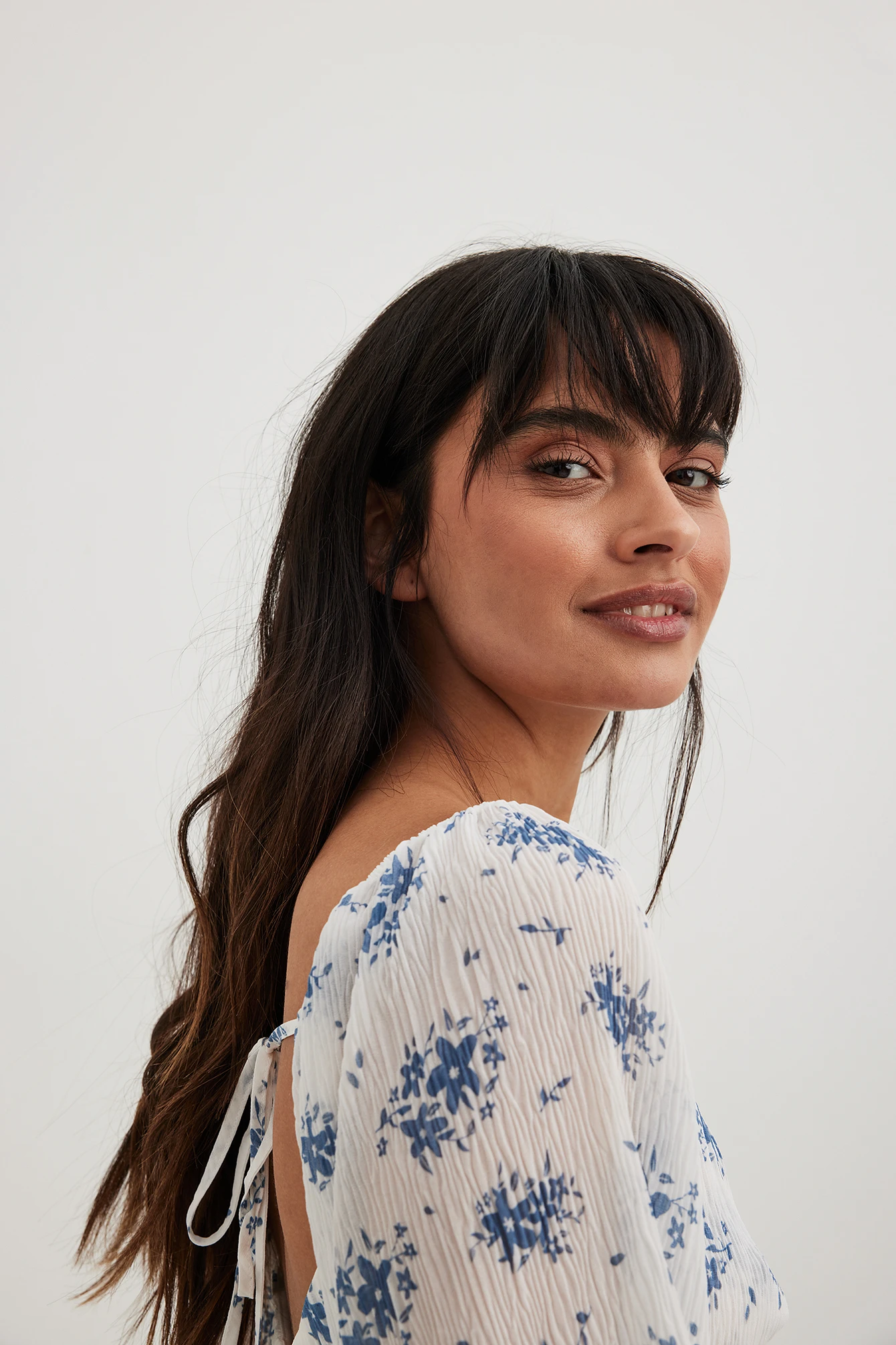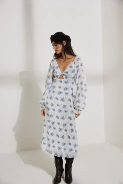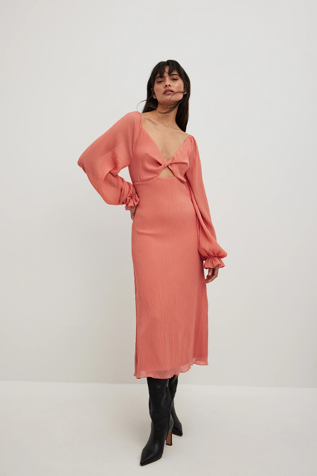 Cette robe midi a une coupe fluide. Elle a un col en V avec découpage torsadé et un design à dos ouvert avec détail auto-sérré. Cette robe midi a une longue manche ballon.