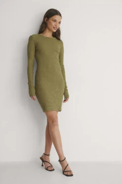 Cette robe courte a un col arrondi, des dĂ©tails dĂ©coupĂ©s Ă l’arrière et une matière Ă©lastique Ă nervures.