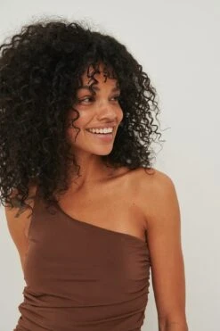 Cette robe courte a un design à une manche, des détails froncés et une coupe moulante.
