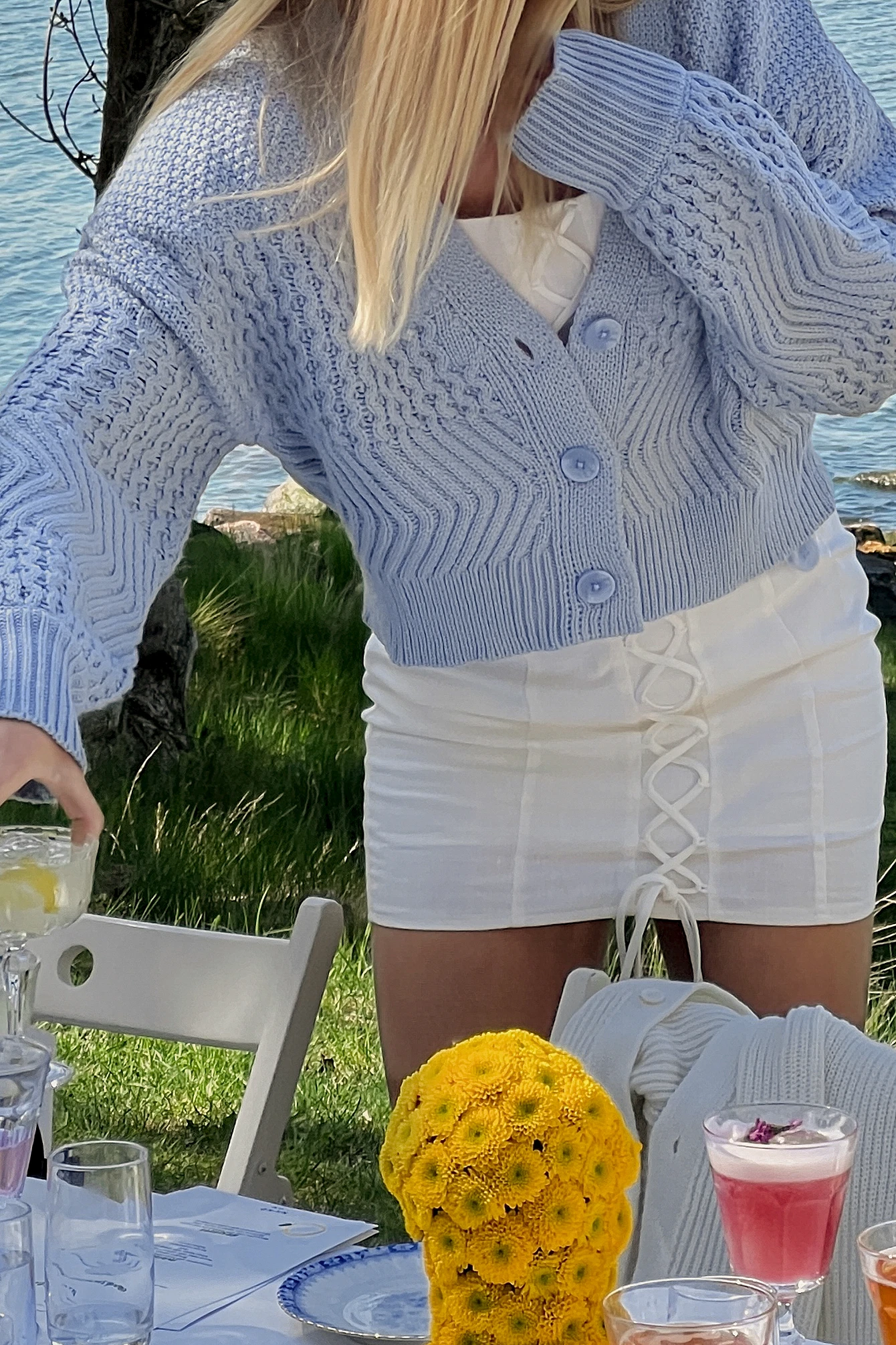 Cette robe courte a des bretelles fines avec noeud Ă nouers, des manches ballon courtes Ă Ă©paule dĂ©nudĂ©e, un dĂ©tail de lacet Ă l’avant, une fermeture Ă©clair Ă l’arrière et une doublure.