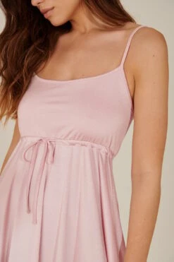 Cette robe courte a une encolure carrée, des bretelles ajustables fines et un cordon ajustable sous la poitrine.