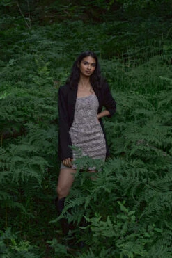 Cette robe courte a une bretelle avec dĂ©tail auto-sĂ©rrĂ© et modèle de bretelle Ă nouer dans le cou, un design corset, une fermeture Ă©clair Ă l’arrière et un dĂ©tail drapĂ© sur le cĂ´tĂ©.