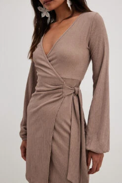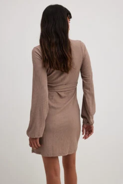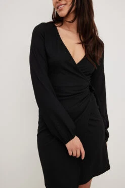 Cette robe a un design enveloppant avec coupe fluide et une matière structurée. Elle a des manches longues avec manchettes élastiques. Notre robe a une fermeture ajustable.