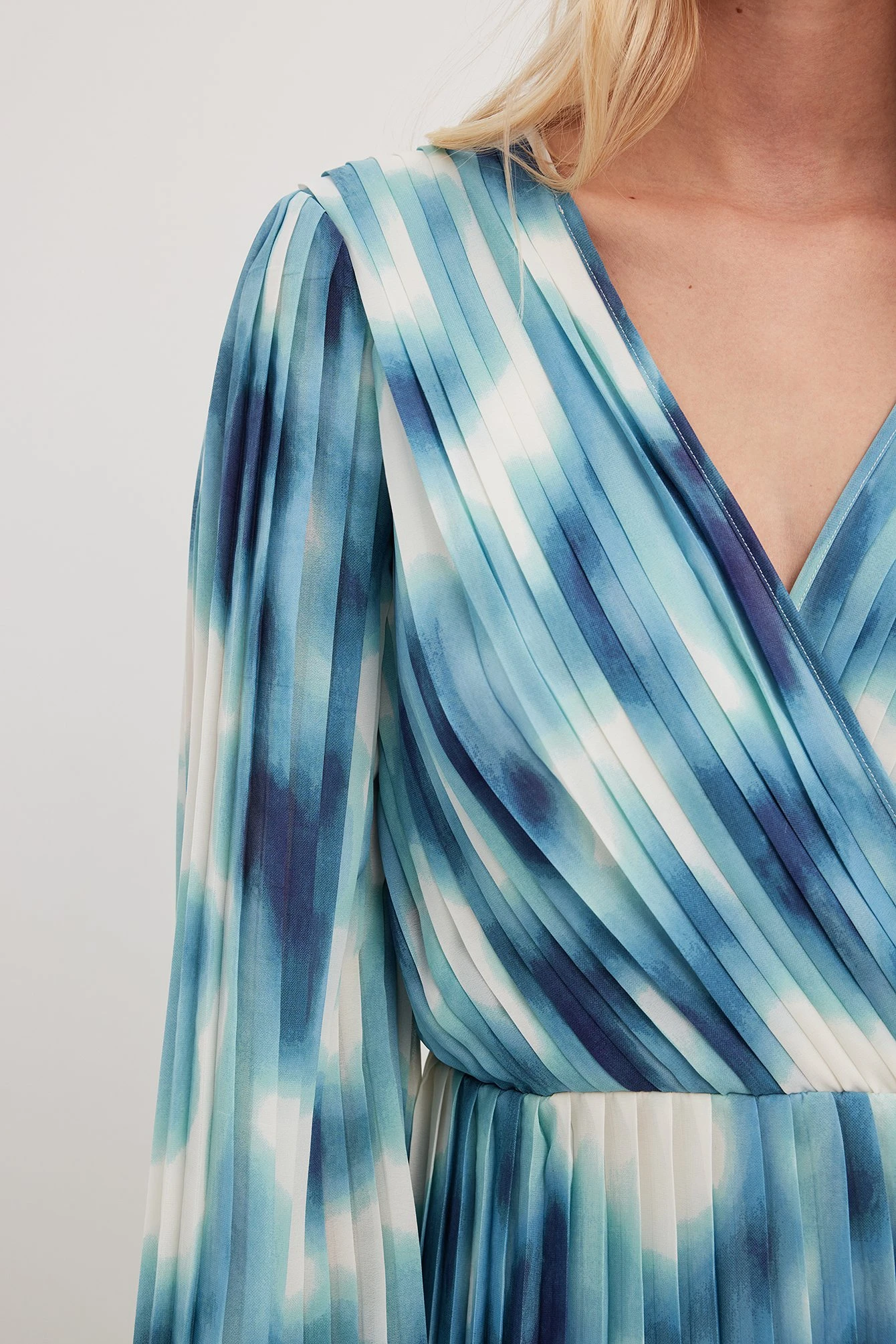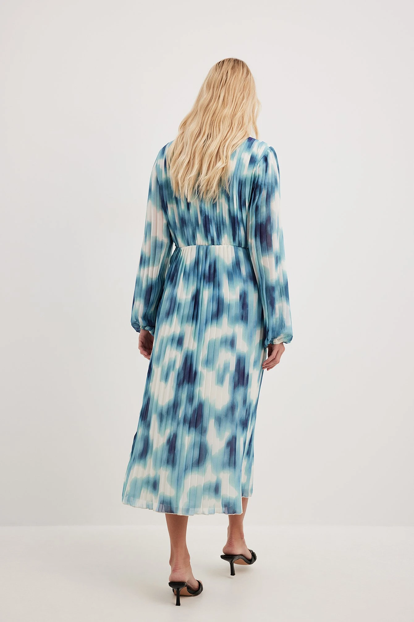 Cette robe midi a une coupe fluide. Elle a un design à plis et un style chevauchant. Cette robe midi a des manches bouffantes et une fermeture éclair latérale.