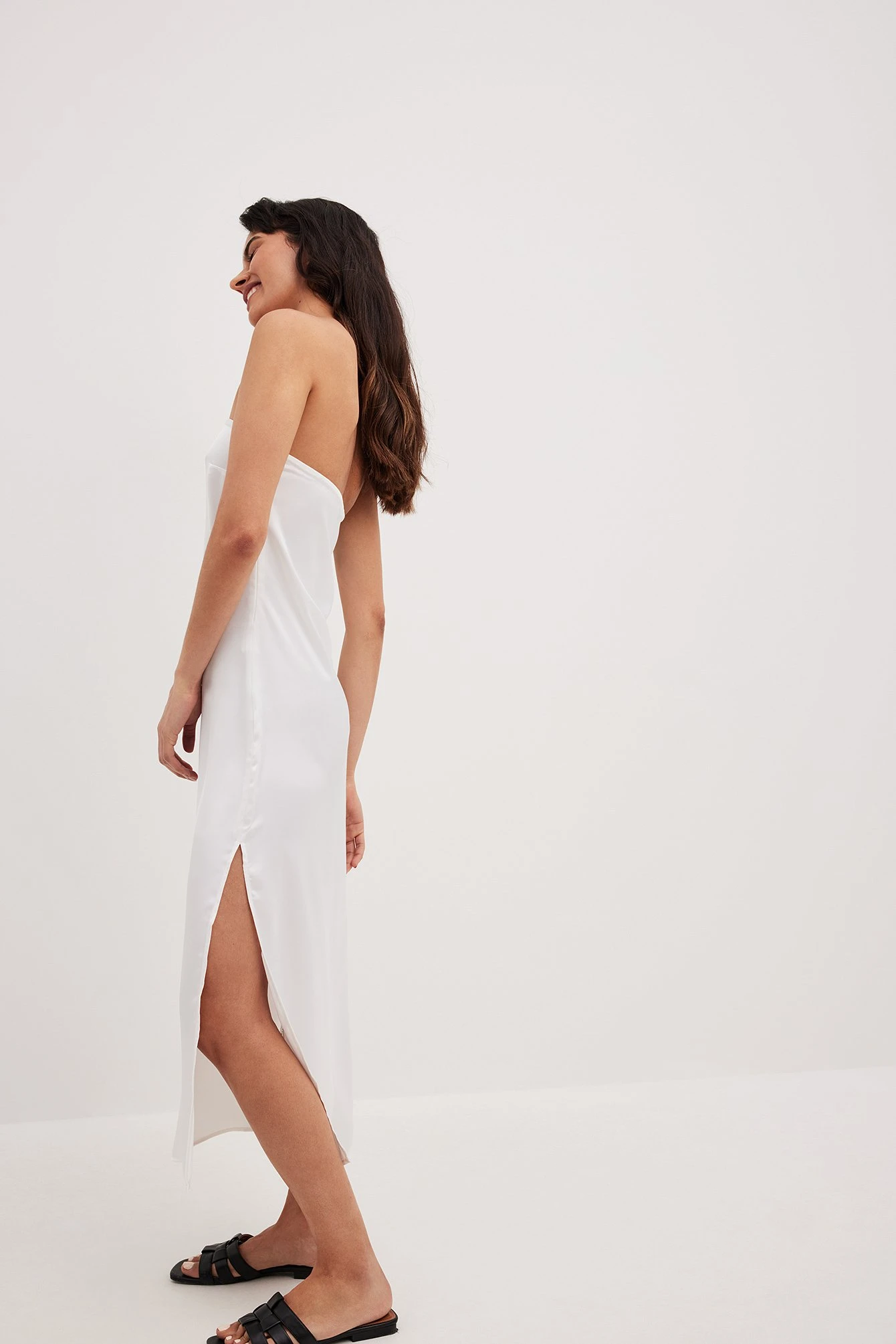 Cette robe a un toucher satin. Elle a une coupe ample et un style bandeau. Cette robe a une garniture intérieure en silicone et une fermeture éclair cachée.