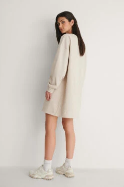 Cette robe midi est ajustée et à épaule dénudée et a un dos ouvert.